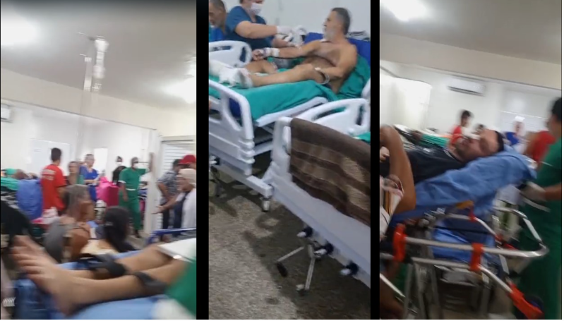 Na enfermaria 2, a superlotação faz com que as camas fiquem muito próximas, aumentando o desconforto e o risco dos pacientes. A queixa é por razão da demora para resolver a manutenção dos aparelhos de climatização. Na recepção, pacientes se aglomeram à espera de vagas para internação e recebem atendimentos ali mesmo.
